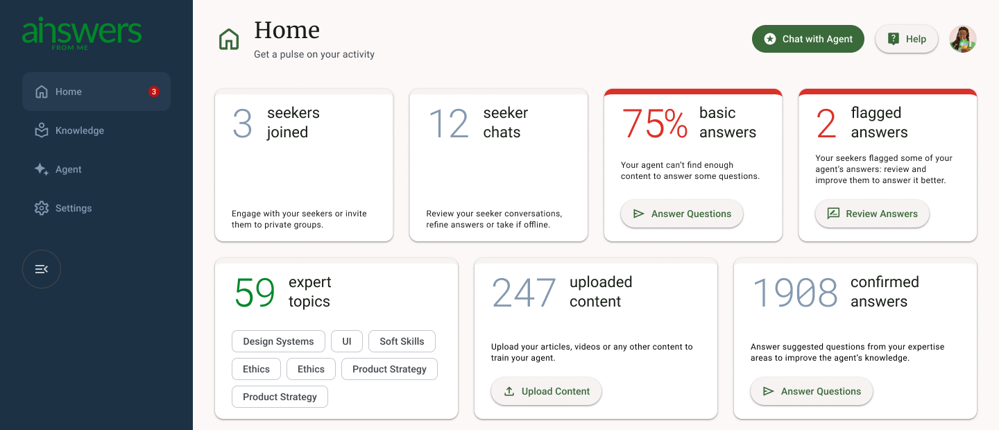 I am deeply fluent in leveraging AI in my work: from utilizing custom-built LLMs in business apps to creating innovative prototypes and solutions that harness the power of AI for faster, smarter design iterations. I lead design at AI-native expert-driven knowledge management startup, Answersfrom.me. I’m a black belt in Figma (not just karate) and design systems, helping my teams build effective and collaborative processes using design tools.