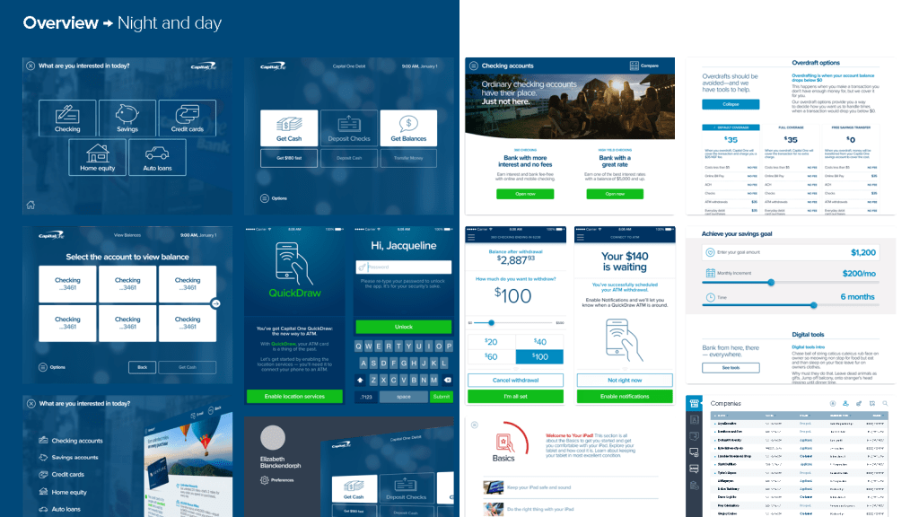 Our initial version wasn’t a design system in the current sense of the word—it was more of digital snapshot of our design language across multiple platforms: iPad and iPhone apps, interactive displays and ATMs.