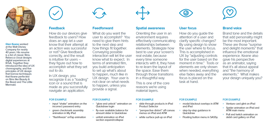 Working in constant collaboration with our developers we’ve created a set of effective guidelines and reusable components that enabled us to iterate and deliver faster, while providing a much more consistent experience for our branch customers. In a bank branch everything—from signing into the lobby management kiosk to withdrawing money from an ATM—is a part of big customer journey.